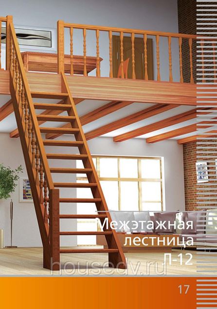 Лестница Л-12 предназначена для эксплуатации в двухуровневых квартирах и загородных коттеджах