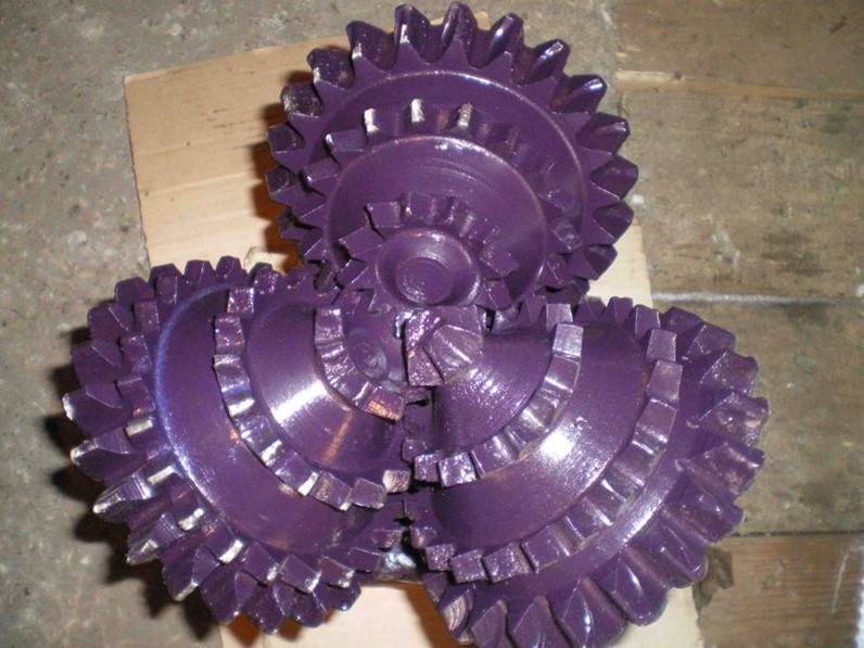 Шарошки этих долот имеют кинематические схемы, обеспечивающие качение с небольшим проскальзыванием основного конуса по поверхности забоя. Поэтому фрезерованные зубья наносят по забою удары с некоторым сдвигом по ходу вращения шарошек.