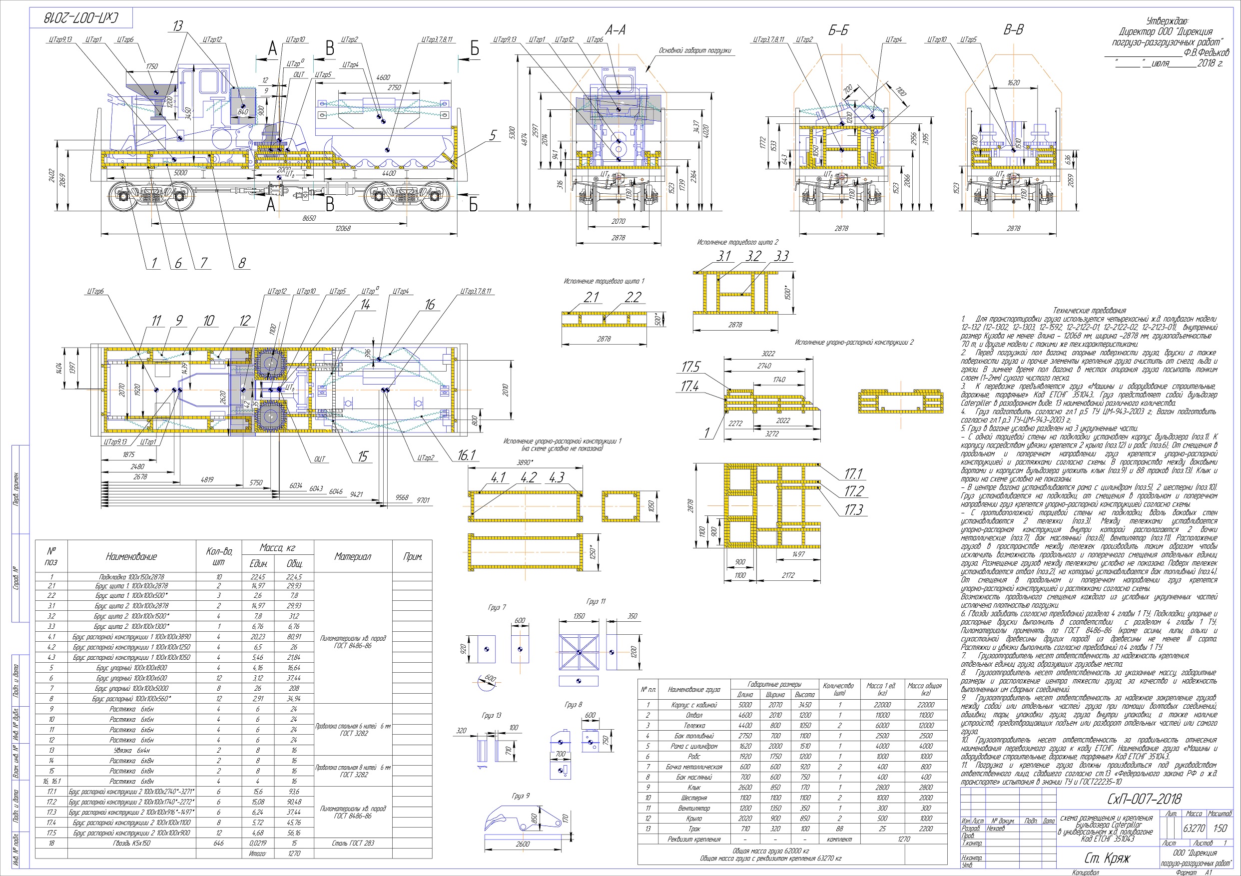 Разработка эскиза, схемы погрузки и крепления грузов в вагоне.