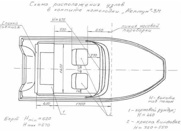 Так была разработана модель, сочетающая в себе все основные требования российского заказчика. Из легкой лодки прогулочного типа "Нептун-3М" превратился в комфортабельную, приспособленную для туризма и дальних походов моторную лодку. Лодка стала длиннее и шире, увеличилась высота борта.