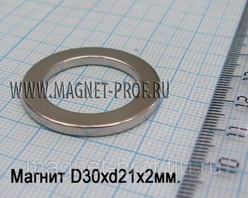 Характеристики неодимового кольца D30x21x2 мм.