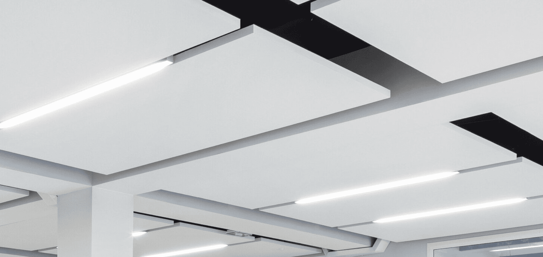 Отдельно висящие панели используются для улучшения акустичсеких характеристик в выделенных зонах помещений и как дизайнерский элемент отделки.