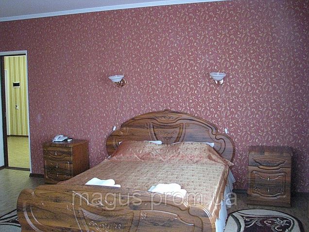 Двухместный полулюкс: двуспальная кровать, холодильник, телевизор, кондиционер, внутренний телефон, шкаф, прикроватные тумбочки, два мягких кресла, столик.