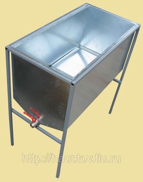 Стол (большой и малый) для распечатки и хранения подготовленных для качки мёда рамок. С фильтрующей оцинкованной сеткой внизу бака. Размер бака 470х470х1020 мм (большой), 470х470х600 мм. Выпускается из оцинкованной, нержавеющей стали или алюминия. Большой стол рассчитан на 24 рамки, малый на 12 рамок. Имеет складывающиеся ножки для транспортировки.