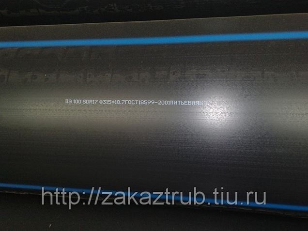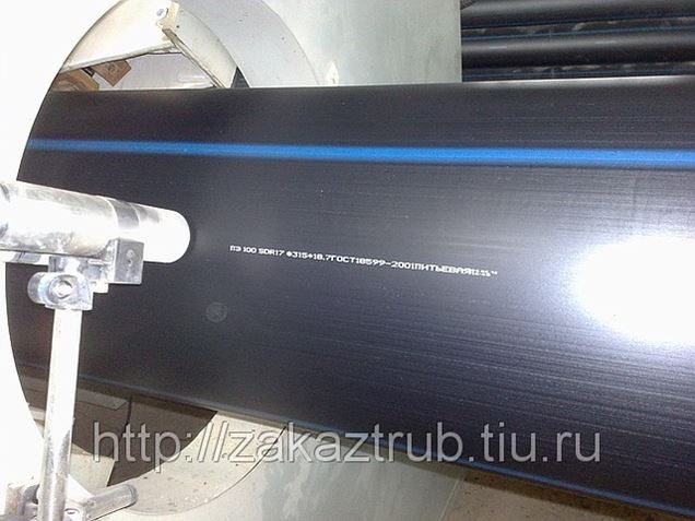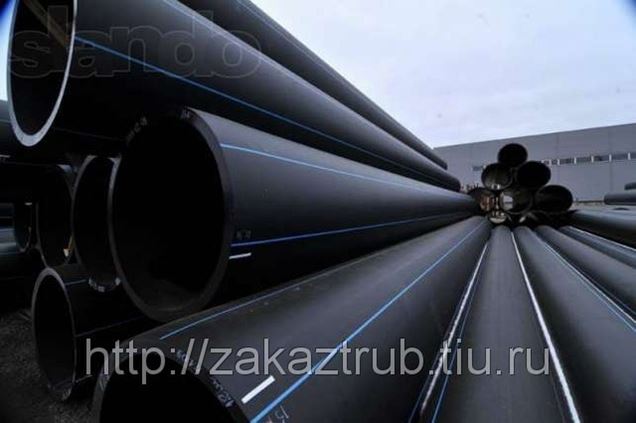 Трубы из полиэтилена ПЭ80, ПЭ100 Цвет: черный с синими и желтыми маркировочными полосами. SDR: 41, 33, 26, 21, 17.6, 17, 13.6, 11, 9, 7.4, 6 Диаметр: 63-560 мм
