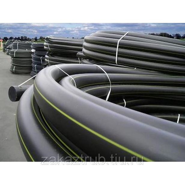 Трубы из полиэтилена ПЭ80, ПЭ100 Цвет: черный с синими и желтыми маркировочными полосами. SDR: 41, 33, 26, 21, 17.6, 17, 13.6, 11, 9, 7.4, 6 Диаметр: 63-560 мм